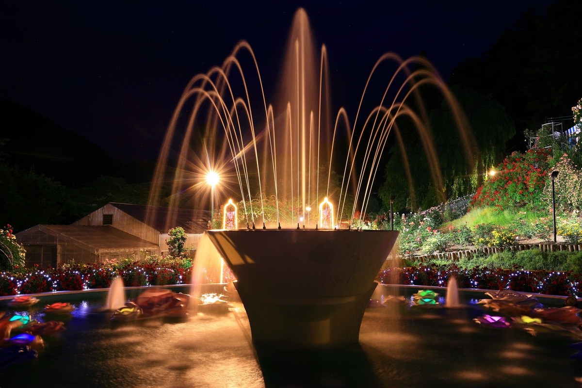 Hanamaki Onsen Rose Garden holds its Night Rose Garden event from late May to mid-October.