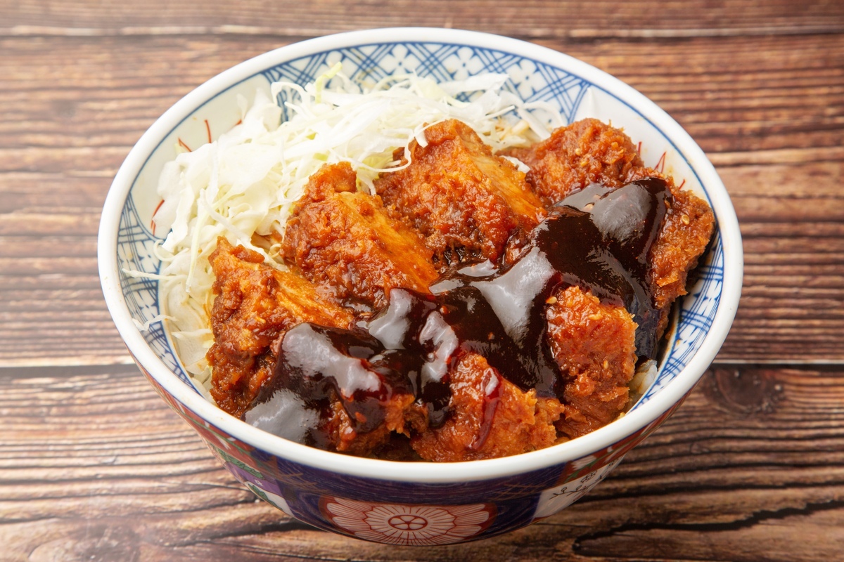 It features a secret thick miso sauce, generously poured over crispy katsu!