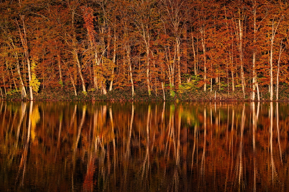 The biggest draw of Tsutanuma is the "water mirror" effect, where the surrounding forest is reflected on the pond's surface on a still, windless morning.