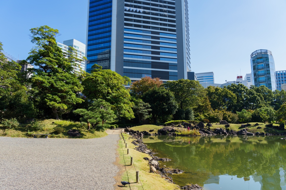 旧芝離宮恩賜庭園は、JR浜松町駅から徒歩1分にある都立庭園です。