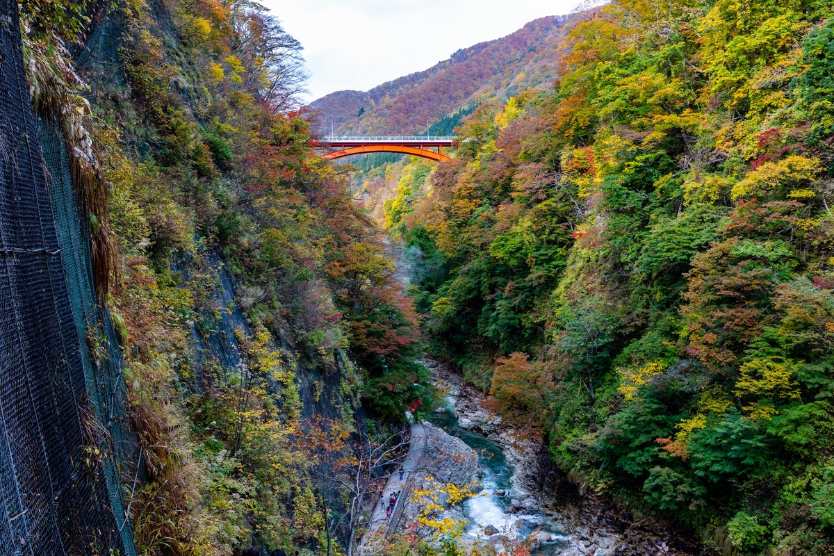 산책로를 걸을 수 있는 시기에도 먼저 가와라유바시 위에서 협곡 전체를 보면 지형을 파악하기 쉬워져요.