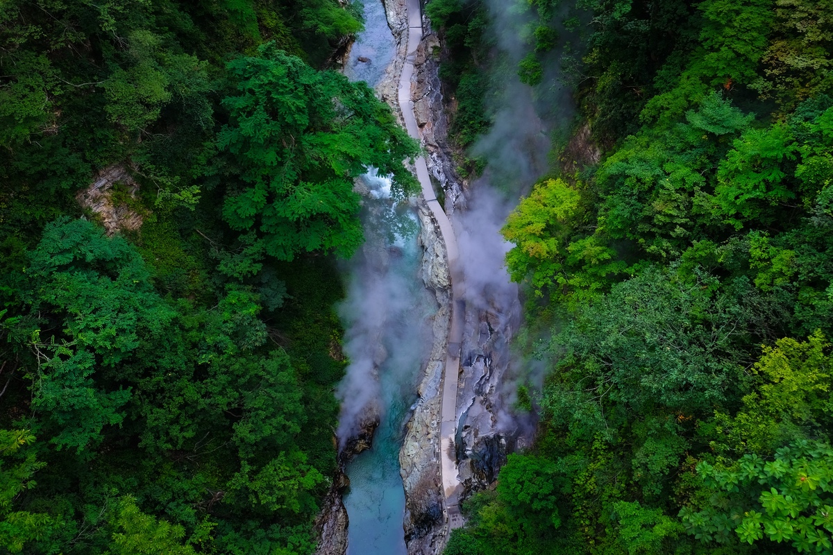 계곡의 경치를 즐기는 스폿인 동시에, 지열의 움직임을 오감으로 느낄 수 있는 곳으로도 강한 인상을 남겨요.