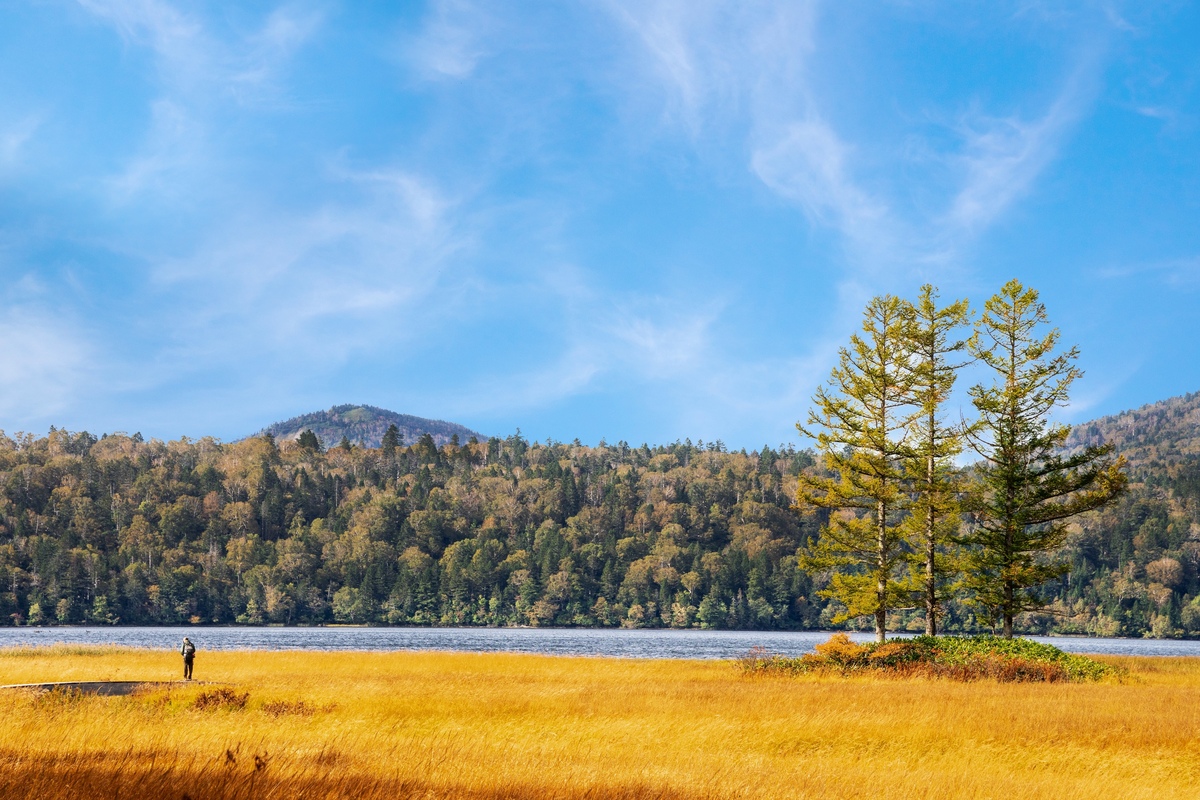 호수 북쪽과 동쪽 기슭에는 오에 습원(오에시쓰겐/Oe-shitsugen)이 펼쳐져 있어, 호수와 산이 겹쳐지는 풍경은 오제가하라와는 또 다른 차분한 매력을 선사해요.