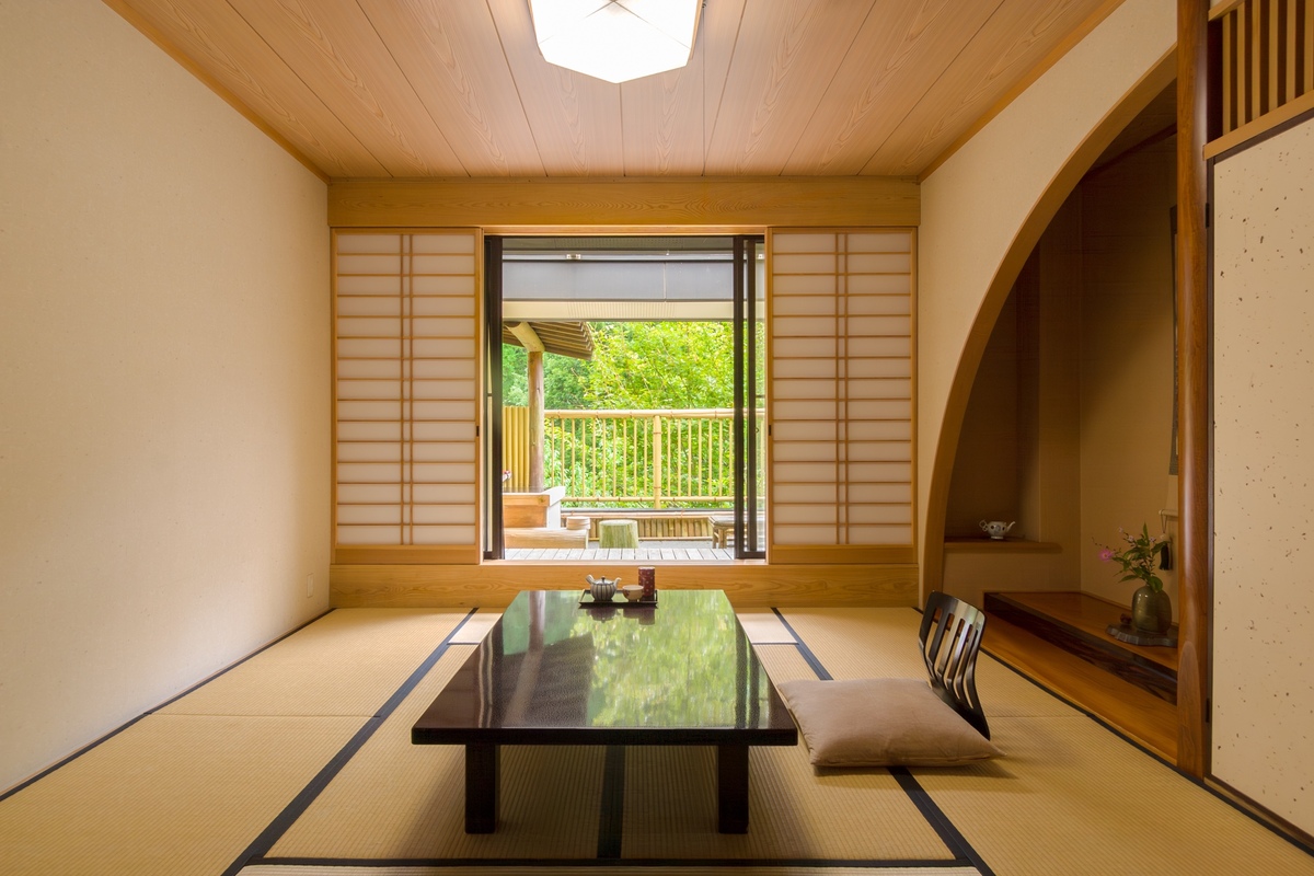 료칸(Ryokan)의 와시쓰는 다다미 위에서 편안히 지내는 것을 전제로 꾸며져 있어요.
