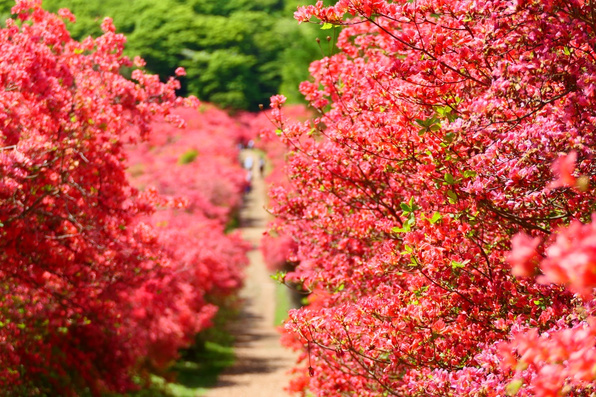 공식 관광 정보에 따르면 철쭉은 약 50ha(도쿄돔 약 10개 분량)에 펼쳐져 있으며, 그 수는 약 50만 그루로도 안내되어 일본 최대 규모를 자랑해요.