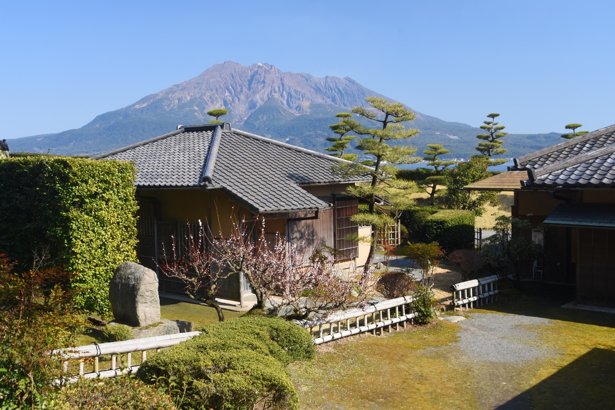 - 将樱岛融入庭园景观的壮丽借景庭园