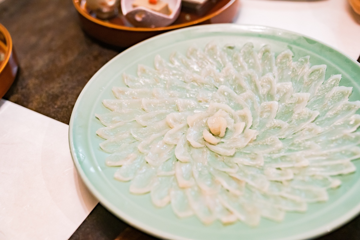 薄得几乎透明的河豚刺身是视觉上也美丽的佳品。