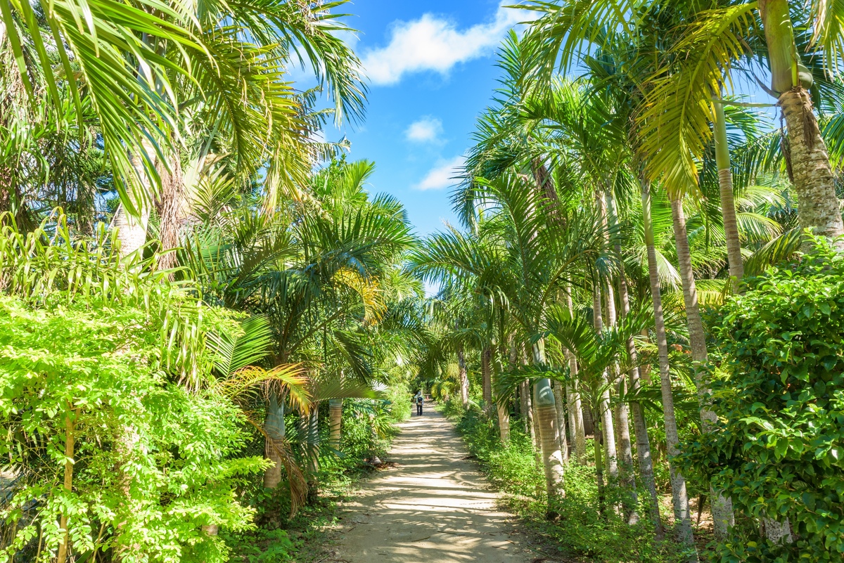 如今岛上被打造为亚热带植物乐园,游客可以欣赏以棕榈类为主的热带植物、蝴蝶园、水牛池以及美丽的海滩风光。