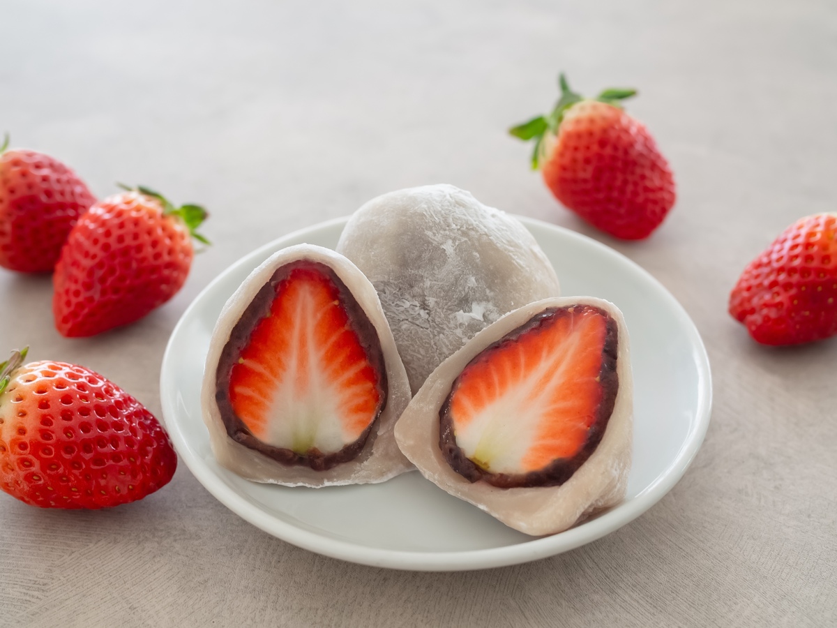 從冬天到春天草莓盛產的季節,在和菓子店和超市都很容易看到。