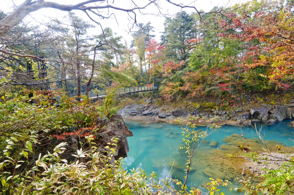 御覽場橋(Goranba-bashi)因老朽化目前暫時封閉通行,峽谷美景可從兩岸或天工橋(Tenkō-bashi)欣賞。