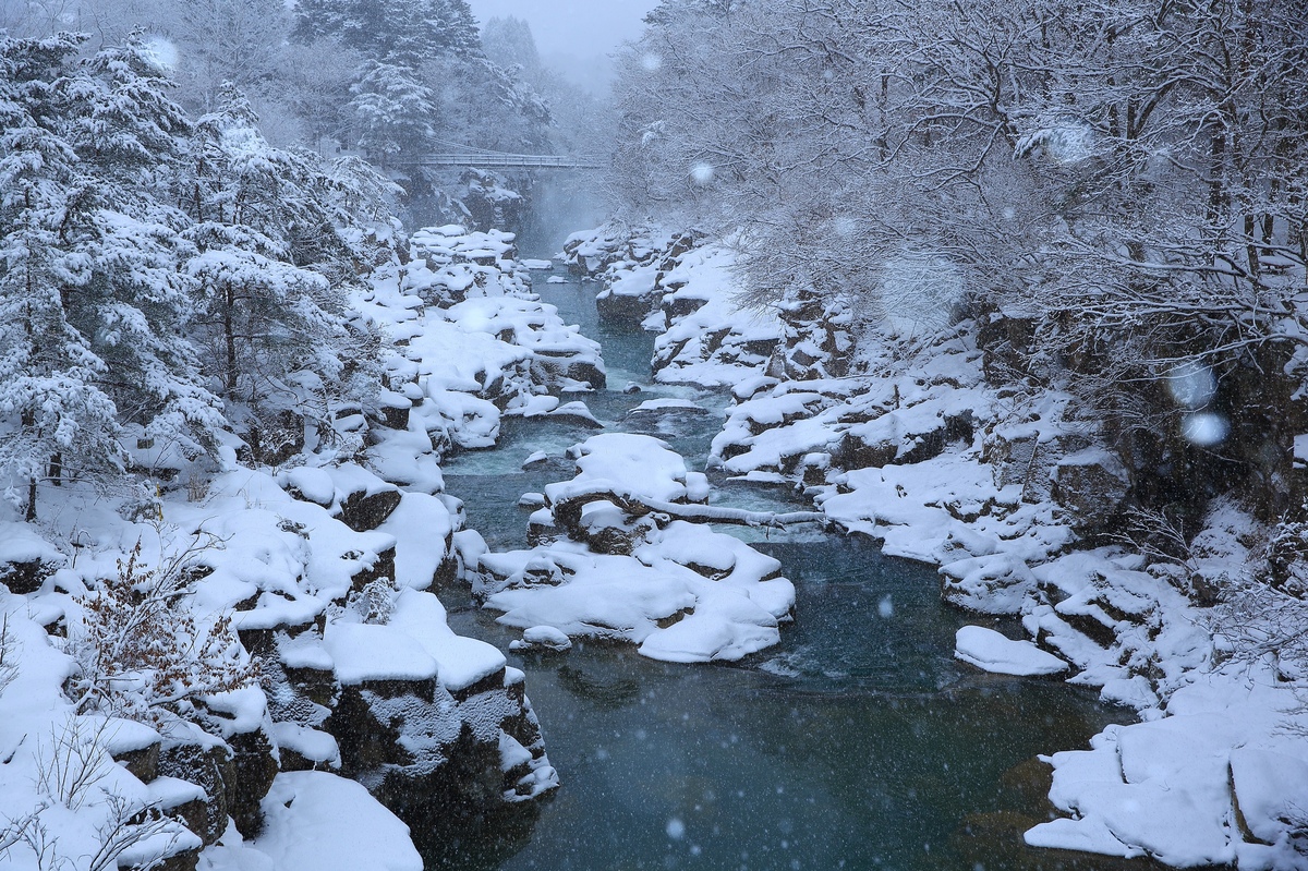 春天的新綠與櫻花、夏天清涼的溪流、秋天的楓葉、冬天的雪景,能享受四季不同風情也是嚴美溪的一大魅力。