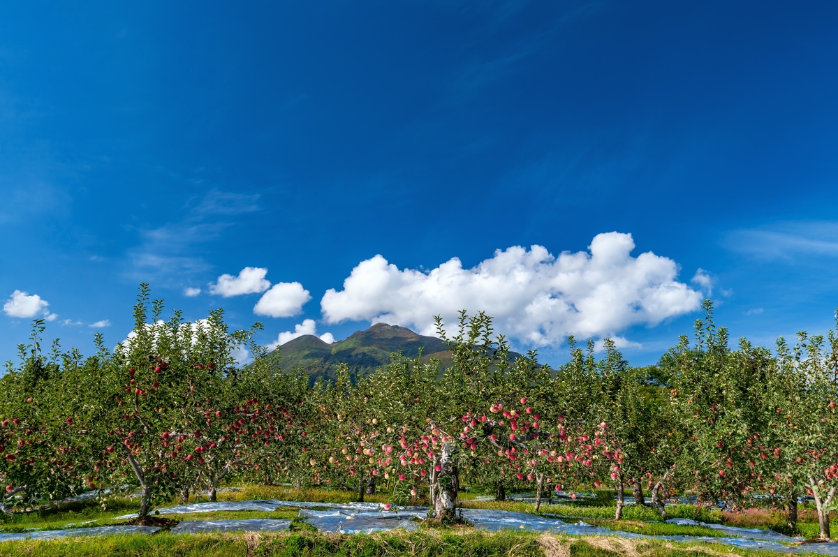 若以遠景為主,春天殘雪、夏天濃綠、秋天與蘋果和稻穗相映的景色、冬天銀白雪景,造訪的季節不同,印象便截然不同。