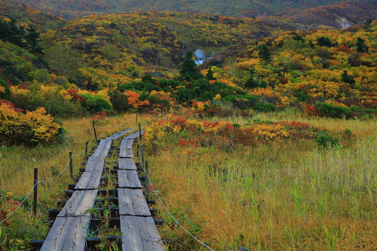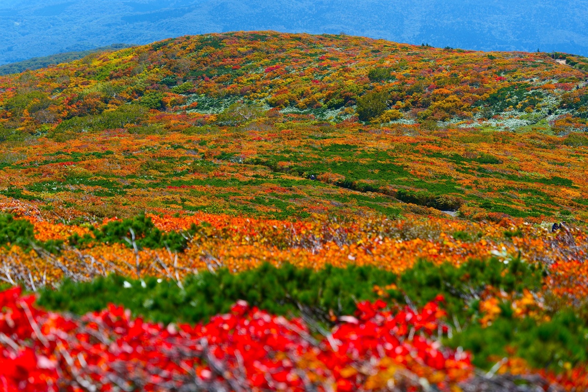 由於紅葉是從山頂往山麓逐漸染色,即使同樣是栗駒山,造訪地點不同,印象也會跟著改變。