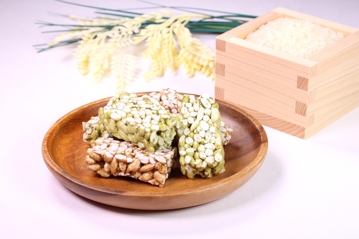 例如岩Okoshi帶有薑的風味,粟Okoshi則增添了芝麻的香氣。