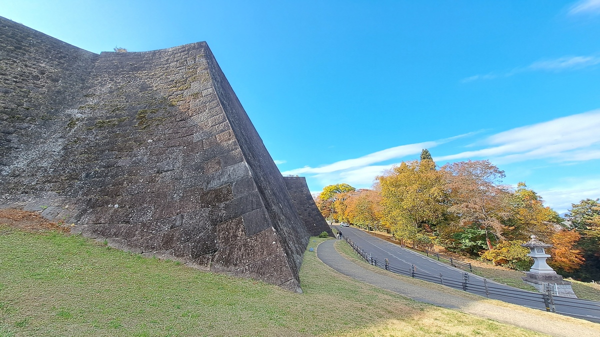 秋天11月上旬〜下旬左右為楓葉最佳觀賞期,石垣與楓葉交織的對比是絕佳拍照點。