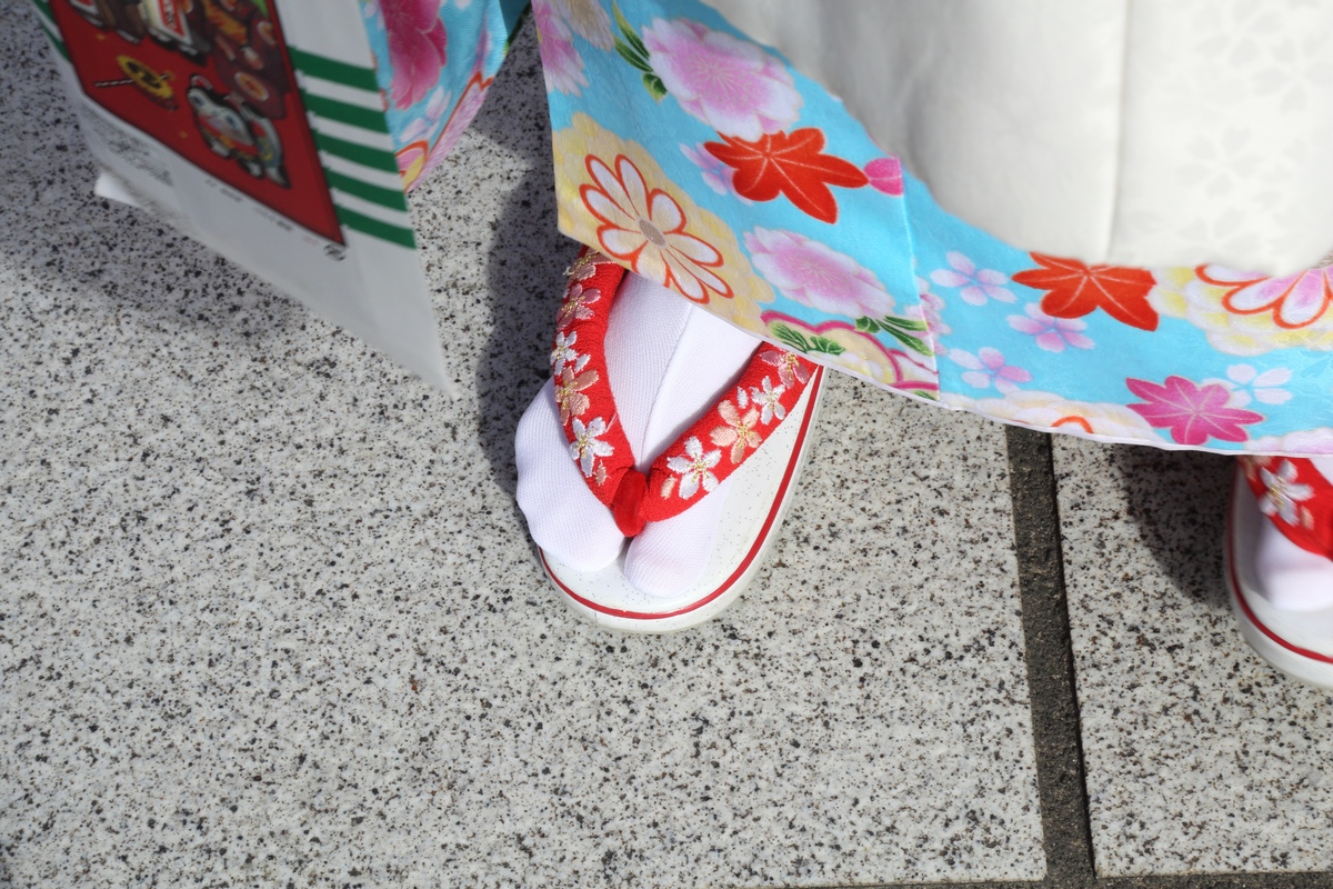 三歲女孩會在和服外披上名為被布(Hifu)的上衣,七歲女孩則會繫上與大人相同的腰帶,呈現正統的和服裝扮。