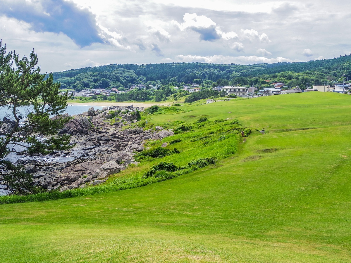 穿過松林步道「淀之松原(Yodo no Matsubara)」後,視野會瞬間開闊,藍色的岩礁海洋與柔和的綠色草地同時映入眼簾,即使是第一次造訪也能輕鬆感受到此地獨有的魅力。